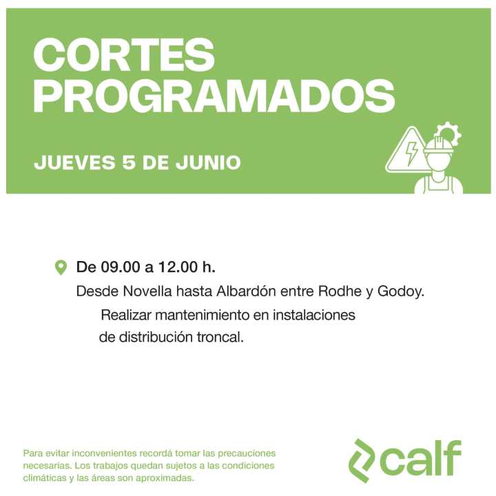 Habrá cortes de luz programados en Neuquén capital durante este miércoles 4 y jueves 5 de junio. Desde la Cooperativa de CALF anunciaron que comenzarán por la mañana y finalizarán sobre el mediodía. Te contamos los detalles.