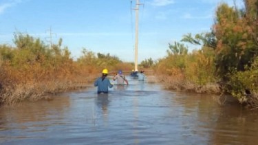 Los trabajos previstos para el domingo buscan mejorar las condiciones de la línea de media tensión de 33 kV en el tramo colapsado la semana pasada, en el marco aún vigente de crecida extraordinaria del río Colorado.