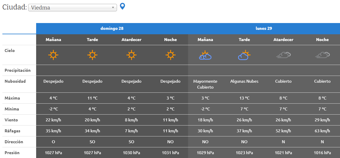 En Neuquén capital, por ejemplo, la semana iniciará una mínima -4°C durante la mañana del lunes, informó en su pronóstico extendido la Autoridad Interjurisdiccional de Cuencas (AIC). La máxima, en tanto, apenas llegará a los 14° C.