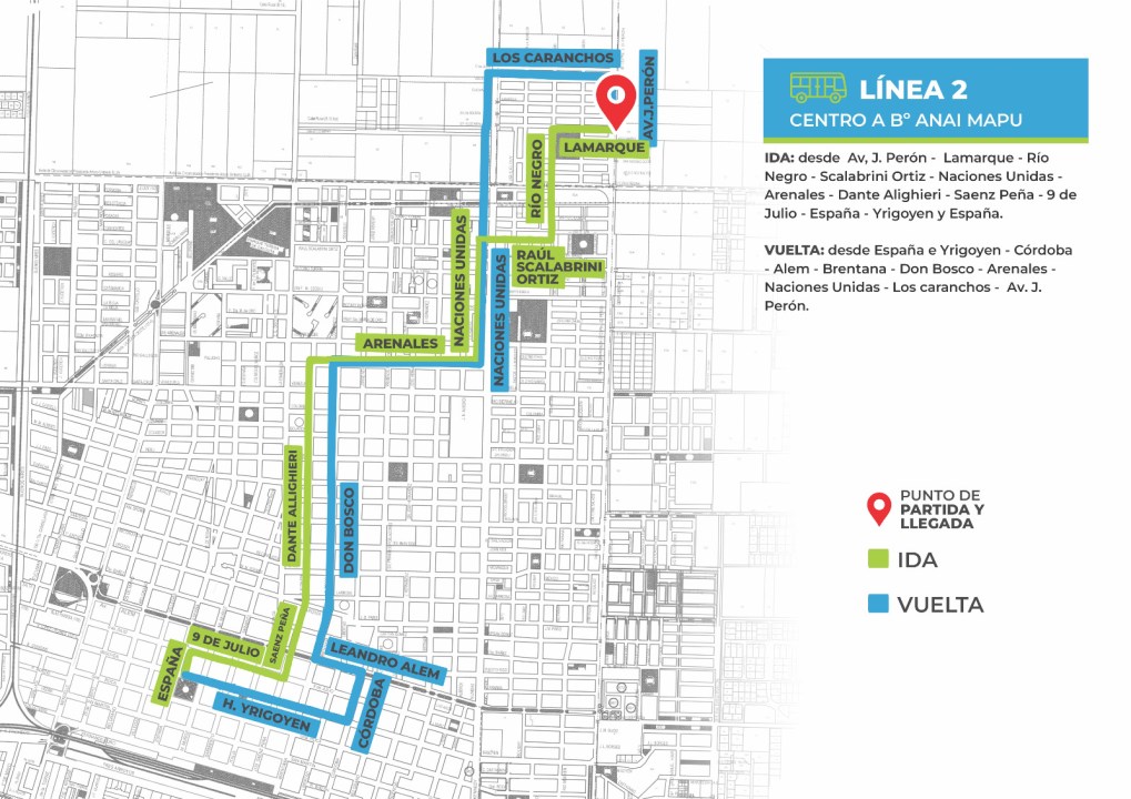 La Línea 2 quedará asignada al trayecto que conectará el centro con Anai Mapu, reforzando uno de los corredores con mayor demanda cotidiana.