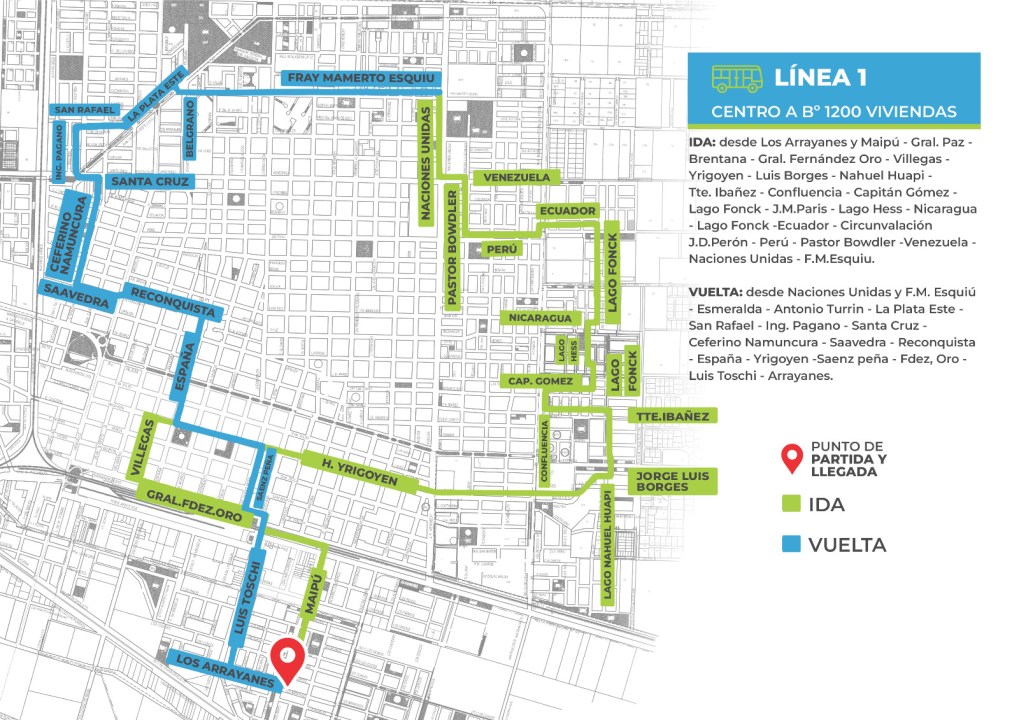 Desde el municipio resolvieron dividir la actual Línea 1, que hoy une El Manzanar con Anai Mapu y 1200 Viviendas, entre otros, para reducir tiempos de espera que llegaban a superar las dos horas. Con el nuevo esquema, ese ramal quedará acotado entre el centro y el barrio 1200 Viviendas, lo que permitirá mejorar la frecuencia y descongestionar el recorrido original.