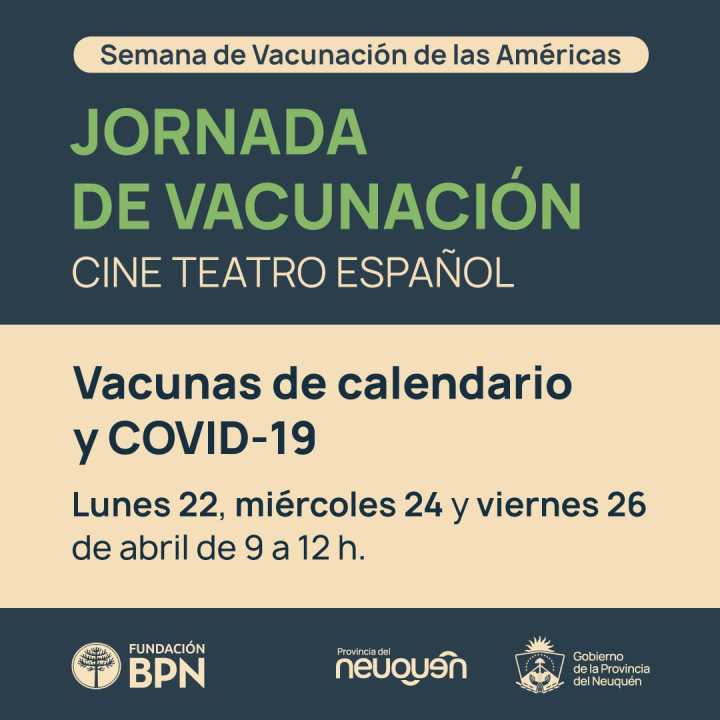 Esta semana, el Cine Teatro Español de Neuquén será punto de vacunación para completar el calendario y reforzar las dosis de Covid 19. Será durante tres días, por la mañana.