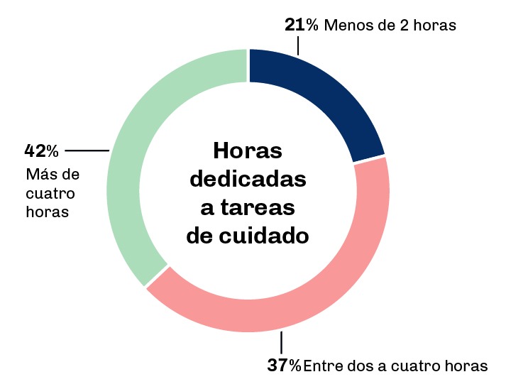 El 42% de las mujeres de la región dedica más de cuatro horas diarias a las tareas de cuidado cotidianas -tener la ropa lavada, gestionar y resolver la comida, si hay hijos o hijas en edad escolar ocuparse de que se conecten a su clase o que concurran si es presencial- lo que equivale a la mitad de una jornada laboral rentada, que por ley en Argentina, es de ocho horas diarias o 48 semanales. La diferencia es que este es un trabajo que permite la reproducción de la vida por el que nadie paga. Para el 75% la emergencia sanitaria, con restricciones de circulación y virtualización de la educación, lejos de redistribuir las cargas implicó una saturación aún mayor.