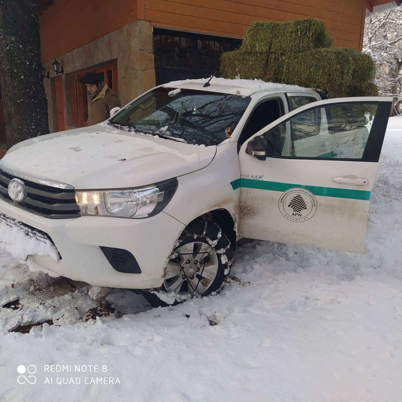Este fin de semana, por motivo del temporal de nieve, guardaparques trabajaron en distintos puntos del Parque Nacional Lanín asistiendo a pobladores y comunidades.