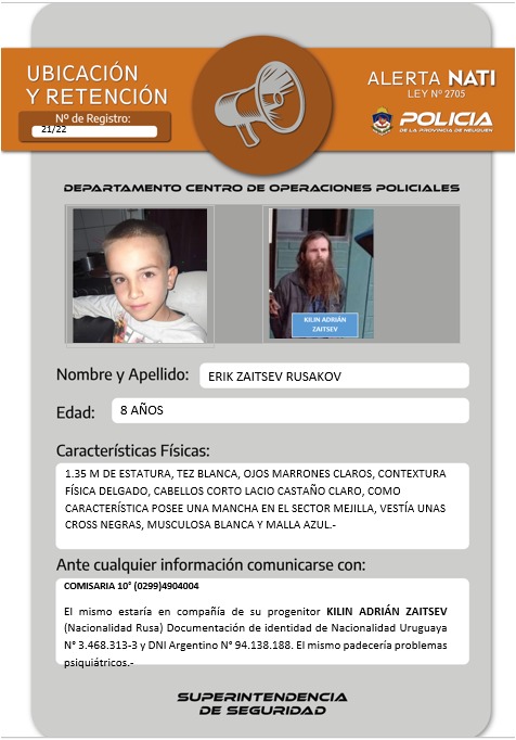 El padre, Adrián Zaitsev, no tenía contacto con Eric Rusakov, pero estuvo el fin de semana con intenciones de verlo. Se cree que se escapó a caballo.