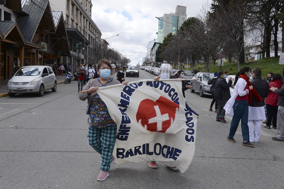 El Gobierno provincial no abrió una instancia de diálogo con los médicos, profesionales, técnicos y enfermeros de los hospitales de Río Negro y por eso hoy en Bariloche volvieron a manifestarse para reiterar su reclamo por una recomposición salarial acorde a la inflación.