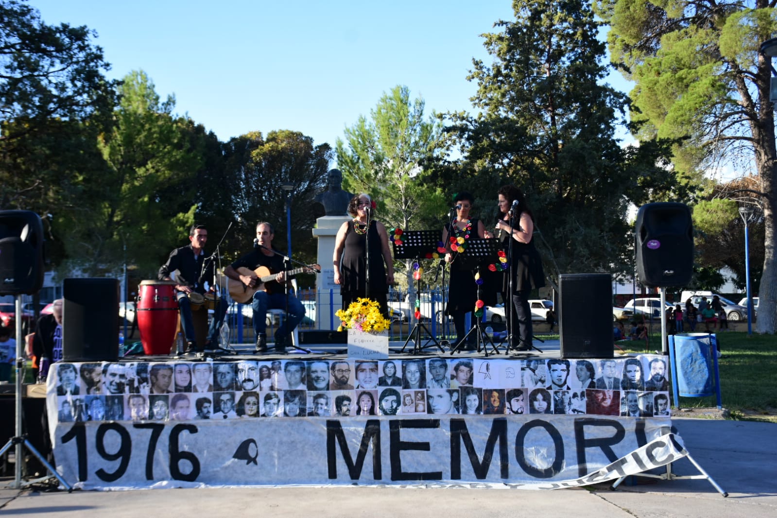 La movilización para exigir ¡Nunca más! pisó fuerte en Roca. Familias de desaparecidos, artistas, referentes políticos y sociales protagonizaron el encuentro.
