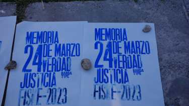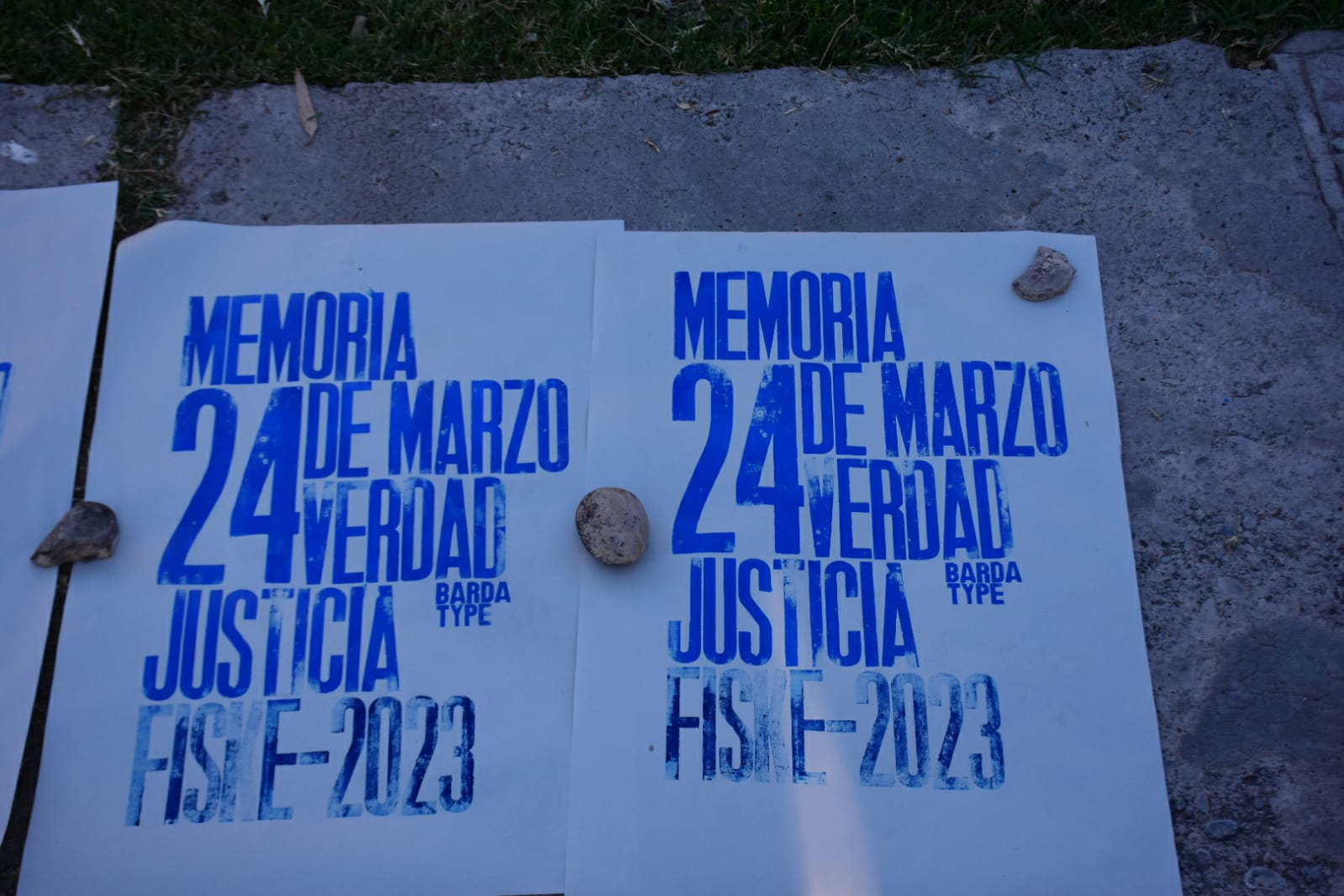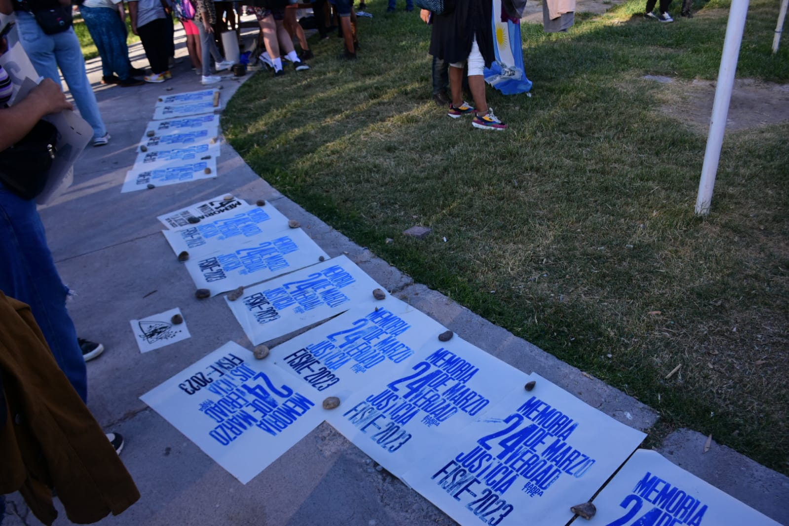 En el mismo lugar que tiempo atrás pintaron los pañuelos blancos de las madres de plaza de mayo, realizaron carteles, colgaron banderines y fotografías que recuerdan los nombres y rostros de personas desaparecidas. También hubo diversas bandas musicales.