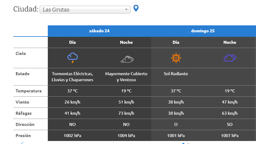 Este sábado será un día de clima super inestable en Las Grutas. Después de dos días de alerta por tormenta, las condiciones mejoraron y regresó el calor, sin embargo el pronóstico no descartó totalmente la presencia de lluvias fuertes y viento, aunque se espera que no generen mayores complicaciones.