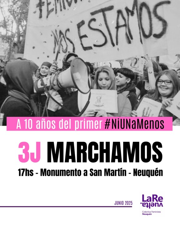 Desde la asamblea Ni Una Menos en Neuquén convocaron a una movilización para este martes 3 de junio. La cita es en el monumento a San Martín, sobre Avenida Argentina, a las 17.