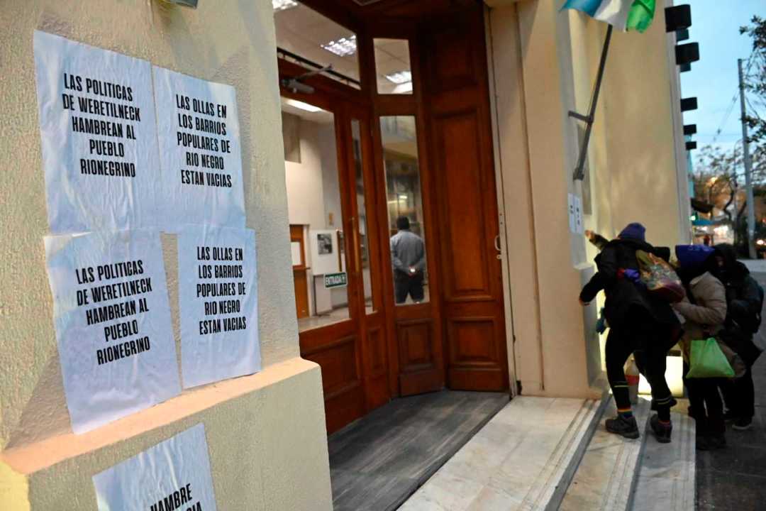 En la Legislatura de Río Negro y la Secretaría de Trabajo, las organizaciones llevaron adelante diferentes intervenciones en las fachadas de los edificios. Se espera que la pegatina de carteles se replique en la sede del Gobierno rionegrino.