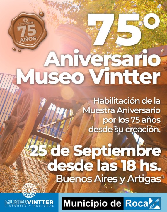 105 firmas acompañaron al acta de apertura del Museo Vintter, un día como hoy, jueves 25 de septiembre, pero allá lejos en el tiempo, en 1950. “En General Roca, territorio nacional de Río Negro, en el Año del Libertador General San Martín, se da por inaugurada la instalación del Museo Regional, con la presencia de los miembros de su comisión directiva y asociados, autoridades y vecindario en general”, dice su propio registro histórico.