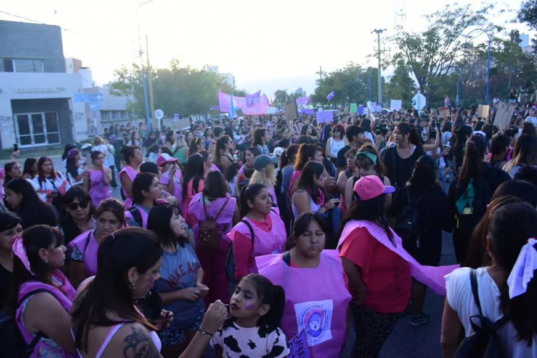 Después de las 18.30 comenzaron a reunirse un grupo de mujeres en la esquina de avenida Roca y Tucumán y otro en la Plaza San Martín. Recién pasadas las 19 inició la marcha por el centro de la ciudad integrada por miles de mujeres y disidencias.