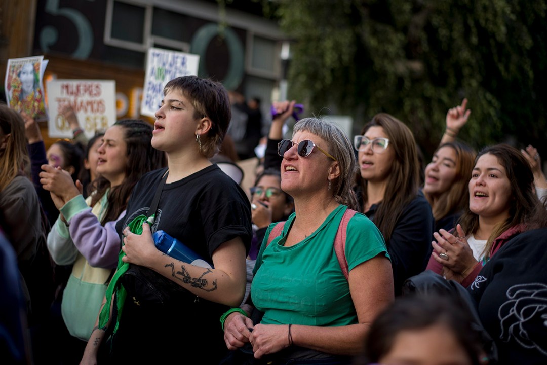Había una distancia importante entre el grupo de manifestantes que demandaban la liberación de las mujeres mapuches y la columna principal de la movilización.