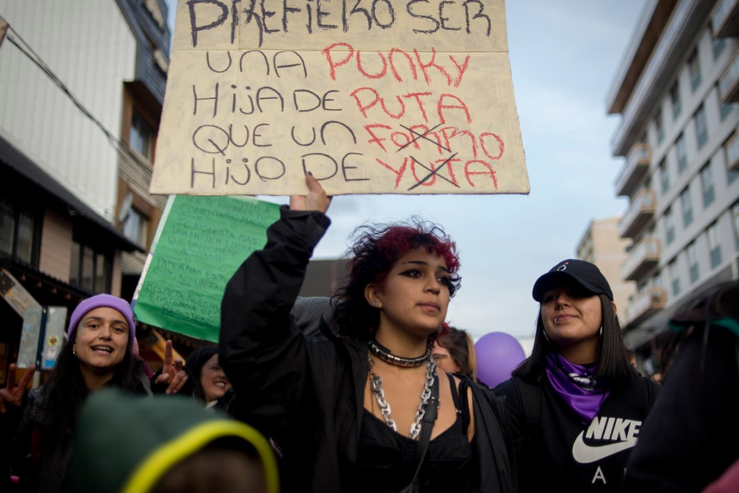Al frente se ubicó un grupo de mujeres mapuches que reclamaban la liberación de las mapuches detenidas a las que identificaron como “presas políticas”. Eran alrededor de 50 manifestantes que portaban instrumentos mapuches y banderas.