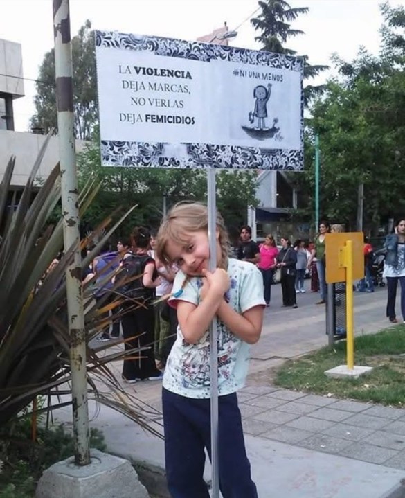 Algunas, como Mora Godoy de 15 años, cuentan con una fotografía real para conmemorar aquel hecho histórico que marcó las vidas de las mujeres en Argentina y América Latina. “La violencia deja marcas, no verlas deja femicidios”, reza el cartel que sostenía a los cinco en aquella marcha.