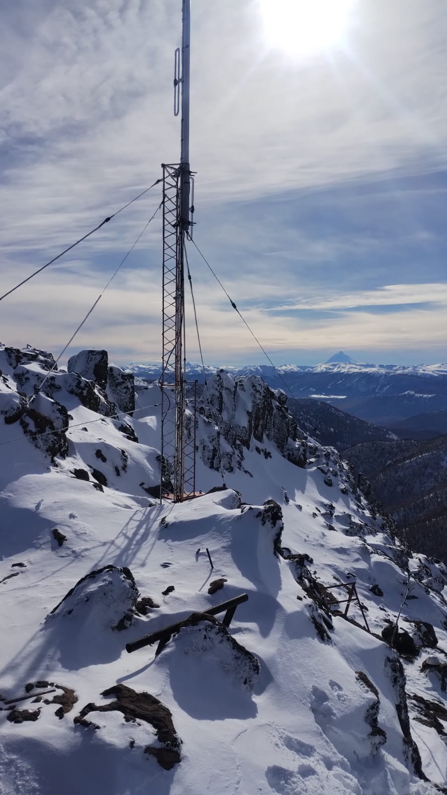 Personal del parque nacional Lanín fue trasladado en helicóptero hasta la cima de la Piedra de San Francisco, a 2000 metros de altura, en la zona del lago Hermoso, a fin de reparar la antena y repetidora de la zona sur que garantiza la comunicación VHF a los pobladores, guardaparques y a las instituciones de la zona sur que trabajan en emergencias.