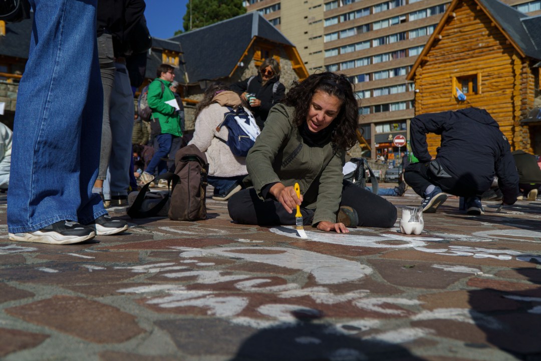 Kitty Villagra pintaba el nombre de su hermana Julia. «A mi hermana la mataron de un tiro en la espalda cuando tenía 18. Ella repartía volantes en San Isidro. Pudimos hacer el juicio y el responsable está en la cárcel», recordó la mujer, mientras descansaba sentada en el piso. Vivió en Buenos Aires hasta 1975 cuando, junto al padre de sus hijos, decidieron radicarse en Bariloche. «Yo estudiaba Psicología en la universidad pero nos vinimos porque allá no sabías cuando te mataban. Fueron 30 mil, no se puede olvidar lo que hicieron los militares. Esto es mantener viva la historia«, explicó la mujer.