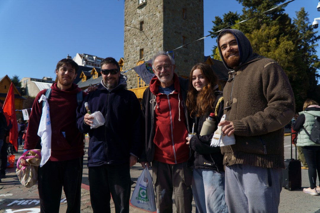 Cientos de barilochenses y turistas se congregaron esta mañana en la plaza para repintar los pañuelos y mantener viva la memoria. Cómo se gestó el reencuentro ideado por la dirigente sindical Graciela Bedini.