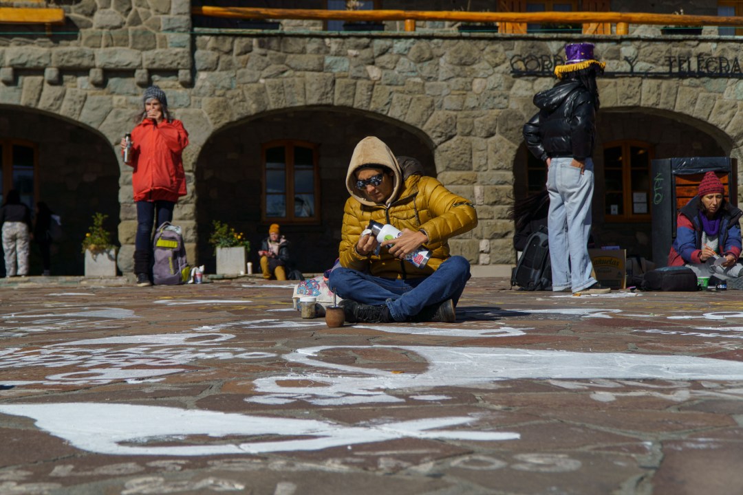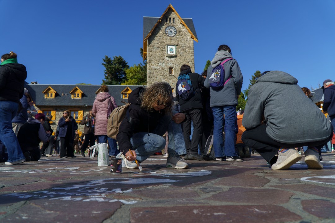 En tanto, Oscar recordó que, en un principio contaban con plantillas para dibujar los pañuelos en la plaza. «Cuando la idea se difundió, fue un escándalo porque algunos decían que íbamos a arruinar el patrimonio. Al principio eramos unos 30, 40 que pintamos un pañuelo grande y otros seis, siete más chiquitos. Cada año se fue sumando gente nueva y ahora no sabés si son barilochenses o son turistas», aseguró.