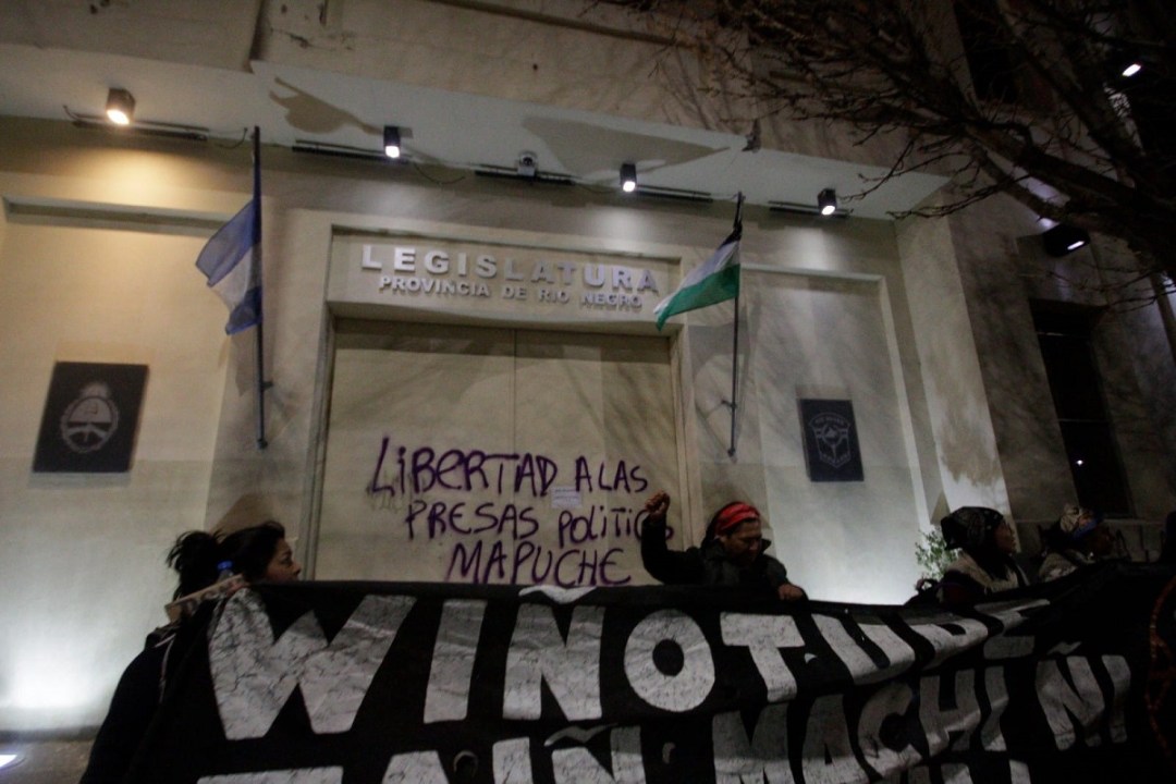 La concentración se realizó en la plaza San Martín, donde se alteró el programa previsto debido al mal tiempo, y luego se realizó una marcha por la zona céntrica de la ciudad que incluyó una intervención en la sede de la Legislatura rionegrina.