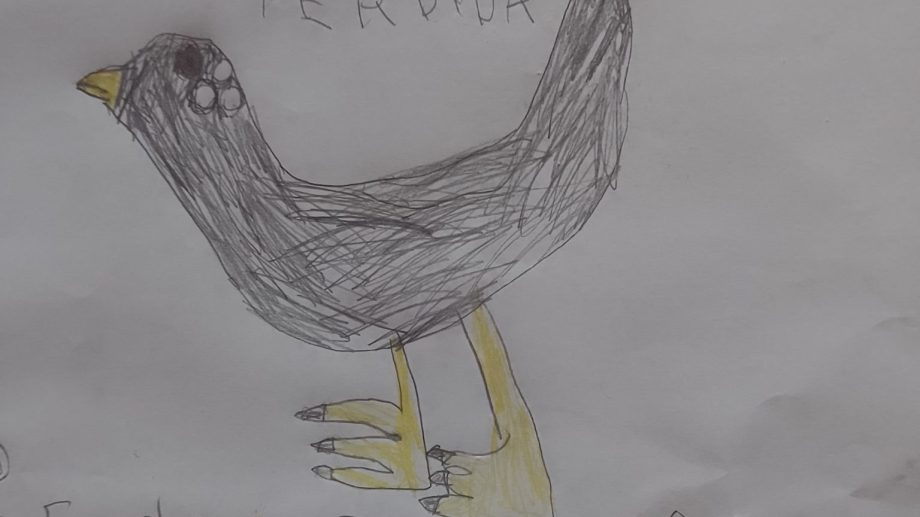A falta de foto, una nena hizo un dibujo de su gallina perdida y logró encontrarla