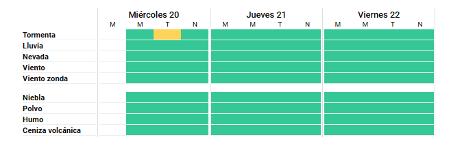 Mientras tanto, del lado rionegrino las partes alcanzadas por la alerta son General Roca, Pichi Mahuida, Avellaneda y la zona este de El Cuy.