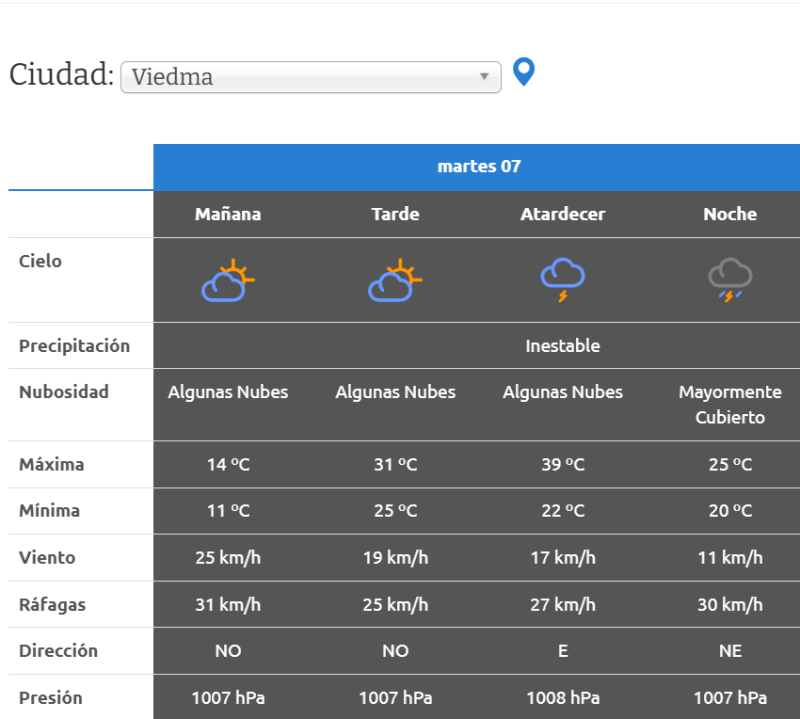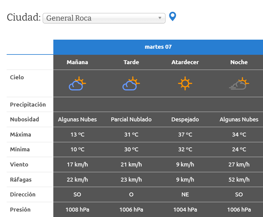 En Cipolletti y Roca se anuncia un pronóstico sin lluvias, aunque en la primera mañana sí se pronosticaban precipitaciones.