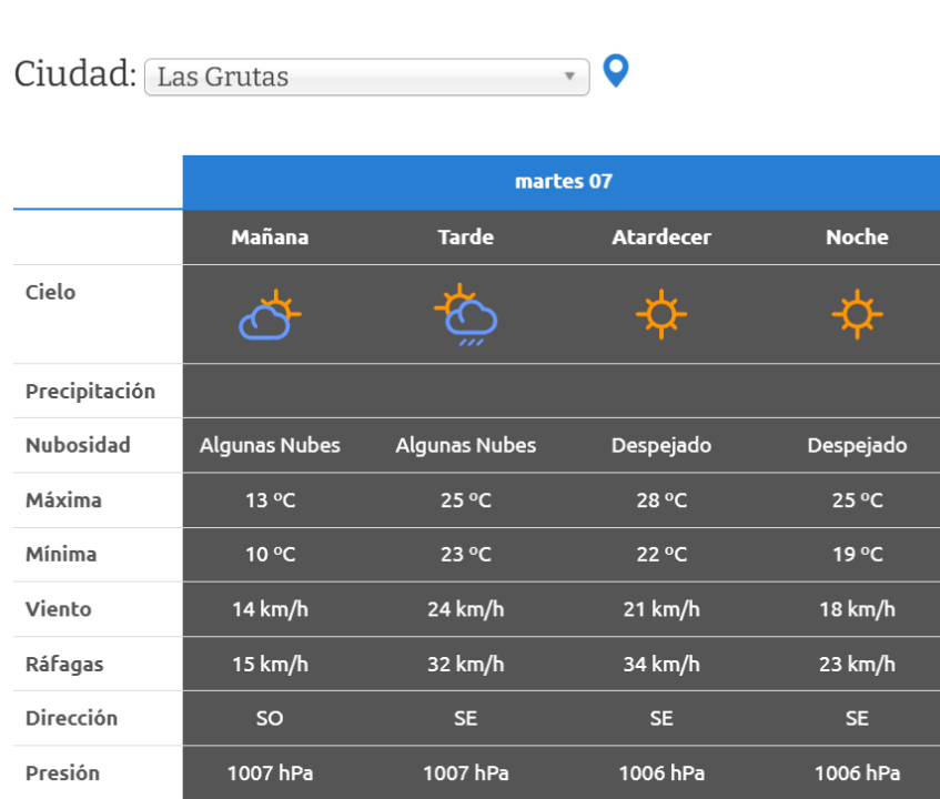 La AIC anuncia lluvias para Las Grutas este martes. Las precipitaciones comenzarán a la tarde y disminuirá hacia el atardecer y la noche.