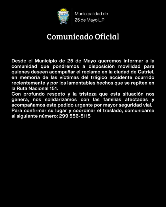 El hecho reactivó los reclamos por el deterioro estructural de la Ruta 151, una traza con alto tránsito que arrastra años de abandono y promesas incumplidas. «Pedimos justicia, señores políticos, que esto no le pase a más nadie«, expresó Hernández, poniendo en palabras la bronca de toda una comunidad.