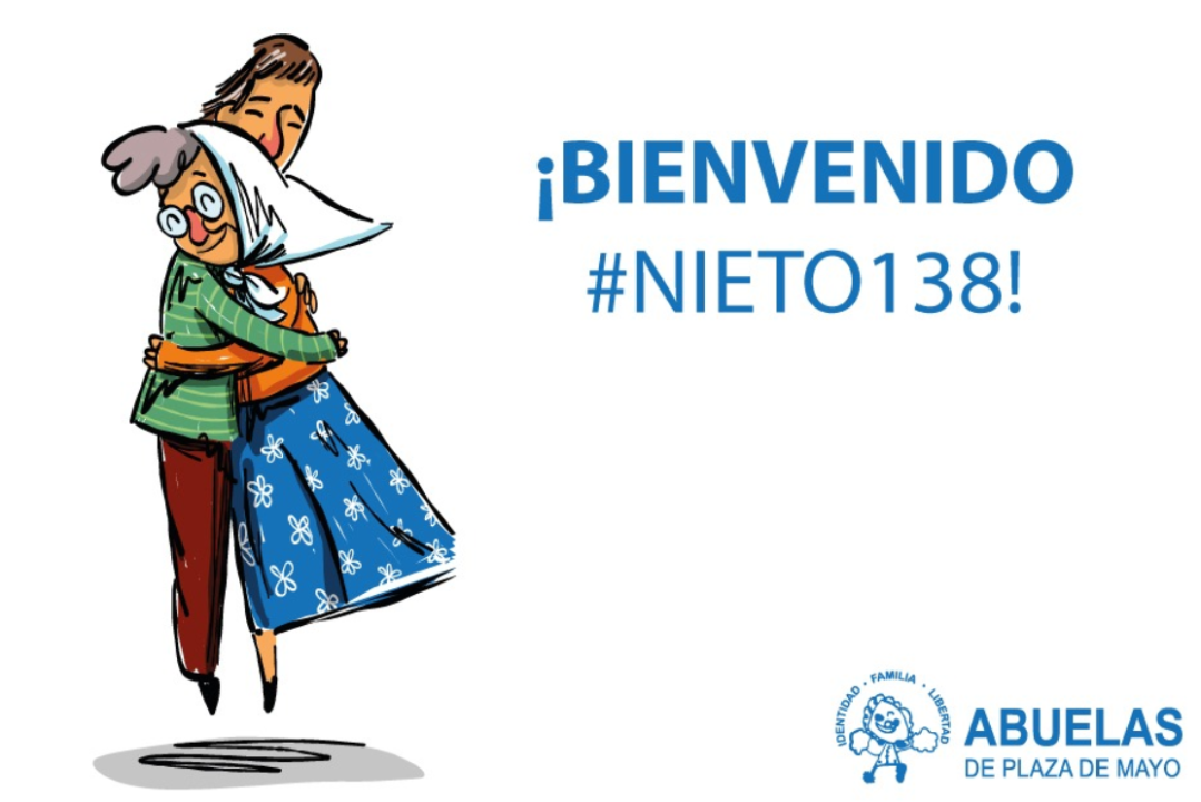 Desde Abuelas de Plaza de Mayo comunicaron «sobre el feliz encuentro de un nuevo nieto, el 138». Este viernes por la tarde dieron una conferencia de prensa, donde informaron que se trata del hijo de Marta Enriqueta Pourtalé y Juan Carlos Villamayor, ambos militantes de Montoneros y desaparecidos en 1976.