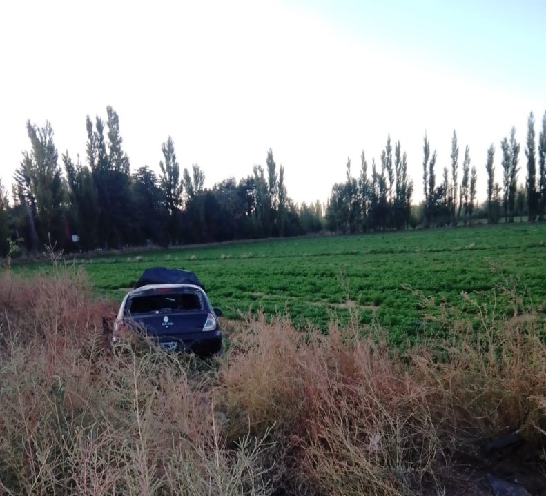 El conductor de 66 años perdió el control del vehículo, marca Renault Clio, a causa del choque contra uno de los barriles y volcó hacia el sector de chacras en Fernández Oro.
