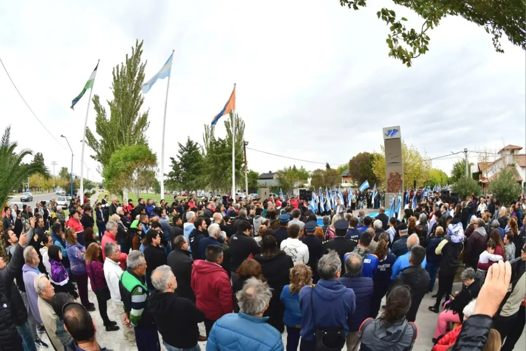 En horas de la mañana, a las 9.30, se realizó el izamiento del Pabellón nacional y posteriormente se concretó la entrega de ofrendas a los caídos en la guerra con la presencia del intendente Walter Cortés, concejales, la legisladora Ana Marks y el presidente del Concejo Deliberante, Gerardo Del Río, más miembros de las fuerzas de seguridad.