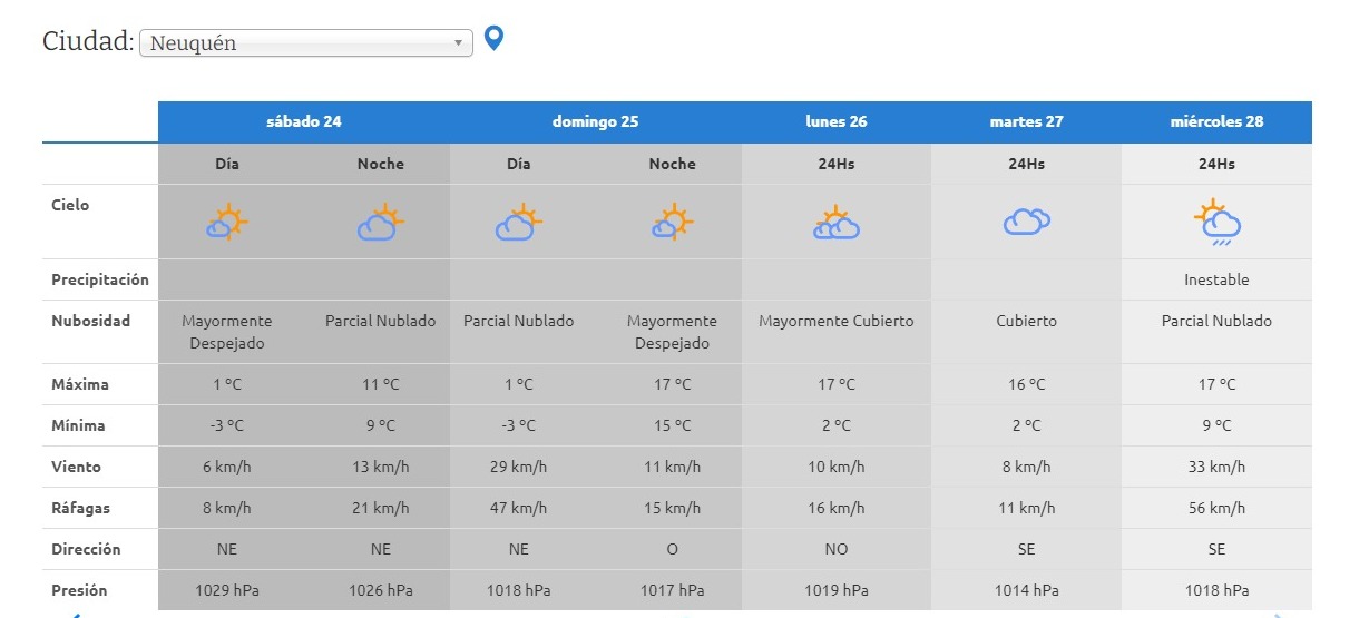 El sábado se presentará mayormente despejado con una máxima de 13°C y una mínima de -3°. A partir del domingo se producirá un ascenso paulatino de temperaturas, que se coronará con los ansiados 20°C durante la tarde del lunes.