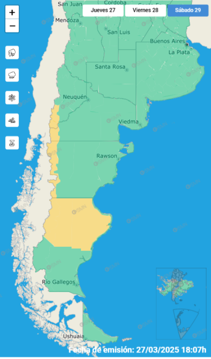 En Río Negro, las condiciones meteorológicas también serán desfavorables este sábado, con un alerta amarillo que abarca Bariloche, la Cordillera de Pilcaniyeu y la Cordillera de Ñorquincó.