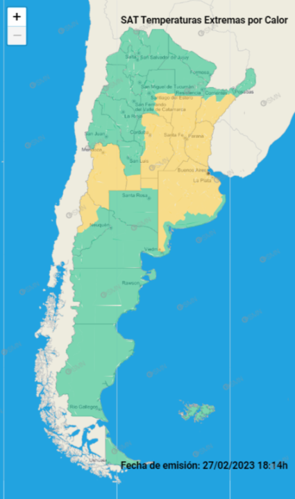 Desde el SMN, informaron que los otros lugares de Argentina, con alerta por las altas temperaturas son Buenos Aires, La Pampa, Mendoza, San Luis, Córdoba, Santa Fe, Entre Ríos, Corrientes, Santiago del Estero y Catamarca.