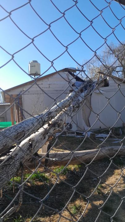 Los álamos, de varios metros de altura terminaron sobre el techo de la casa prefabricada tipo «steel frame», ubicada en Maquinchao 7452. Este tipo de edificaciones se realiza con materiales livianos «por eso se rompió tanto» explicó el funcionario.