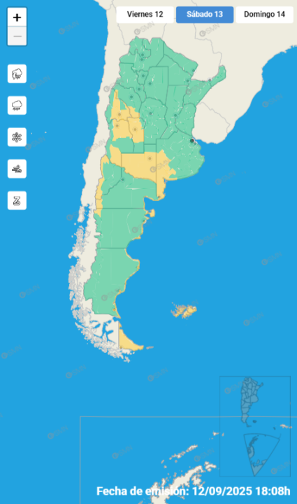 El Servicio Meteorológico Nacional advirtió por ráfagas que podrán superar los 90 km/h y precipitaciones que podrían acumular entre 20 y 40 mm.