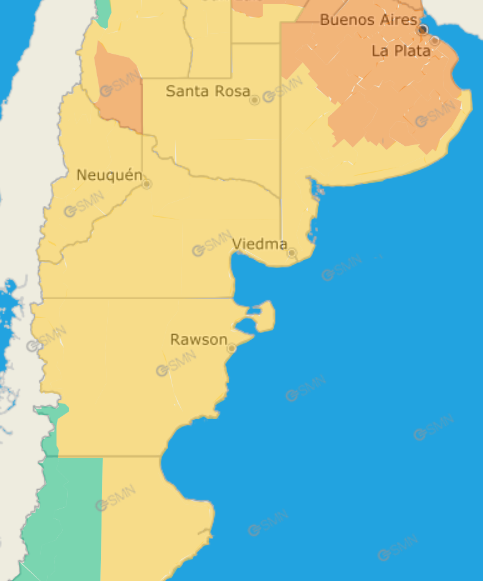 Además, también indicaron que la alerta por tormenta que rige en la costa atlántica de Buenos Aires podría afectar también en Río Negro.