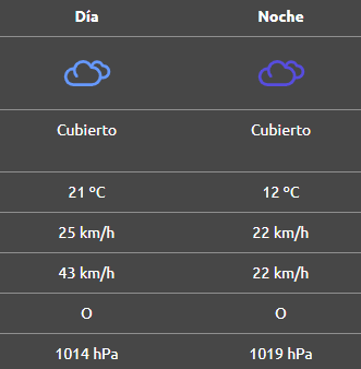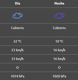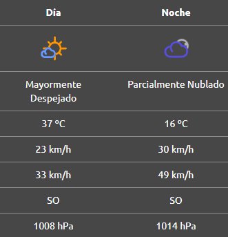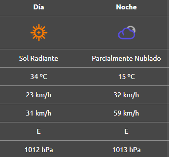 Por la noche, la temperatura descenderá hasta los 16°C, mientras que el viento aumentará su incidencia a 30 km/h, con ráfagas de casi 50 km/h.