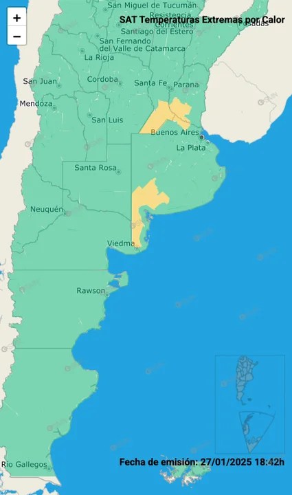 De esta manera, se mantiene el alerta amarillo que regía para algunas partes del suroeste y del norte de la provincia de Buenos Aires, el sur de Santa Fe y el sur de Entre Ríos.