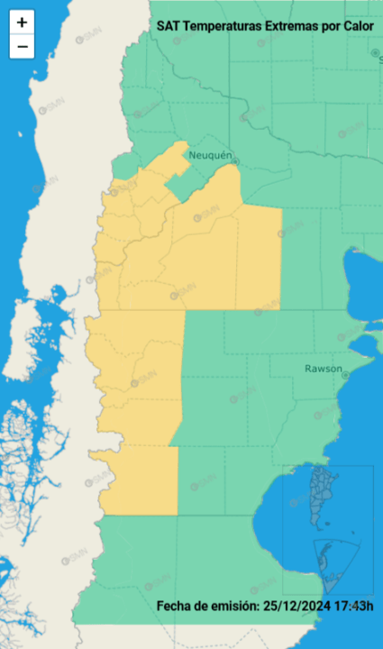 Neuquén, Río Negro y Chubut son las tres provincias afectadas por el alerta amarilla por calor extremo.