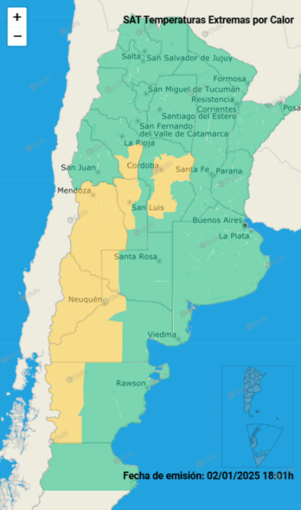 El SMN comunicó que las otras provincias con alerta son Córdoba, San Luis, La Rioja, Mendoza y La Pampa.