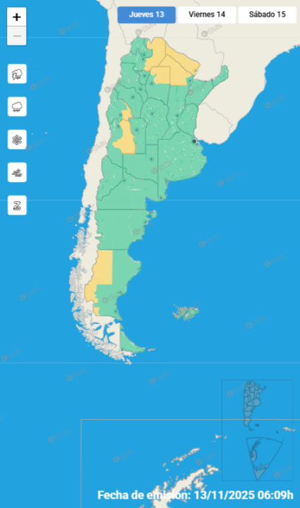 De esta manera, el SMN mantenía un alerta amarillo que rige este jueves para zonas de las provincias de Chaco, Formosa, Santiago del Estero, Salta, San Juan y Mendoza. En algunas zonas, el aviso sube a alerta naranja.