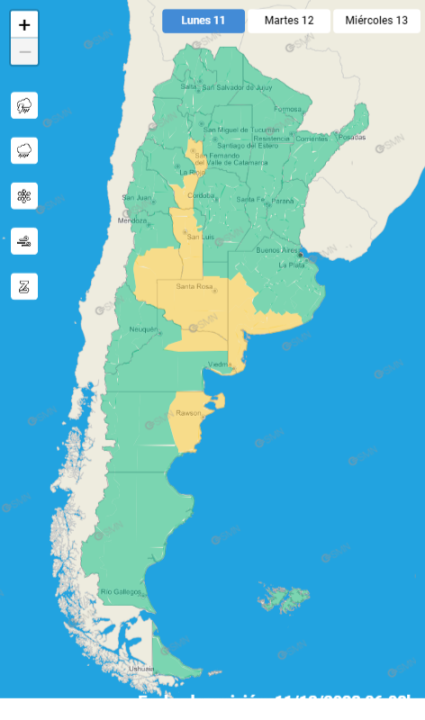 Se espera que el área sea impactada por vientos provenientes del sector norte, con velocidades sostenidas oscilando entre 45 y 55 km/h.