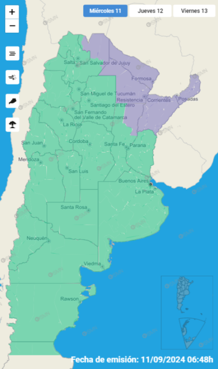 Según detalló el SMN, hoy la advertencia por presencia de humo alcanza a Chaco, Corrientes, Formosa, Misiones, Salta Y Santa Fe. Con el paso de los días, viene bajando la cantidad de provincias afectadas. El lunes, fueron 14 los puntos con alerta.
