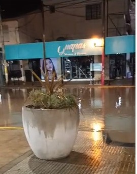 En imágenes tomadas por vecinos, se pudo ver a algunos autos circulando con dificultad en una esquina céntrica, en donde el agua había superado el nivel de la calle y llegaba ya a la vereda, a metros de casas y comercios ubicados en ese sector.