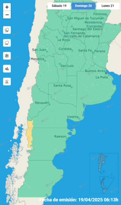 En Neuquén, en tanto, la alerta por lluvias es para el lunes por la mañana en el sur de Aluminé, la zona de Junín de los Andes, y San Martín de los Andes. En tanto, en Villa La Angostura y alrededores se anunció para la madrugada y la mañana del lunes.