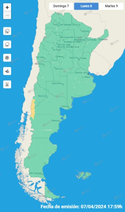 El Servicio Meteorológico Nacional (SMN) emitió un alerta amarillo por lluvias para la noche del domingo y la mañana de este lunes 8 de abril, en Neuquén y Río Negro. El organismo nacional detalló las zonas afectadas en ambas provincias.