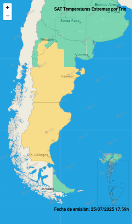 Además de la nieve, la ola polar traerá bajas temperaturas a varias provincias de la Patagonia, entre ellas Neuquén y Río Negro. Hasta el momento anunciaron que permanecerá durante este sábado 26 de julio.